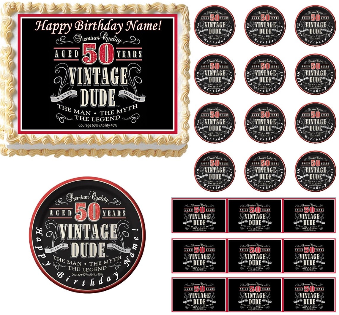 Amazon Com 50th Birthday Vintage Dude Aged 50 Years Birthday Edible Icing Image Cake Cupcake Topper For 8 Inch Round Cake Or Larger Grocery Gourmet Food